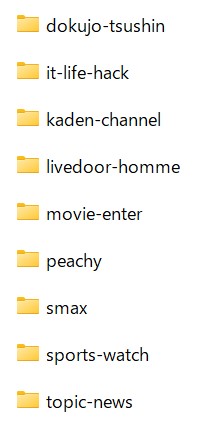 9種類のカテゴリーに分かれていて、内容はニュース記事になっています。