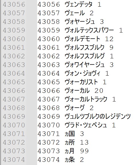 次回はこのデータを元に各文書・各単語のTF-IDFを算出します。