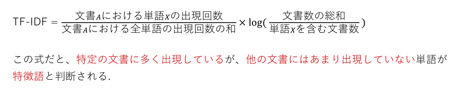 以下のサイトの説明にあるように、TF-IDFは各文書中に含まれる各単語が「