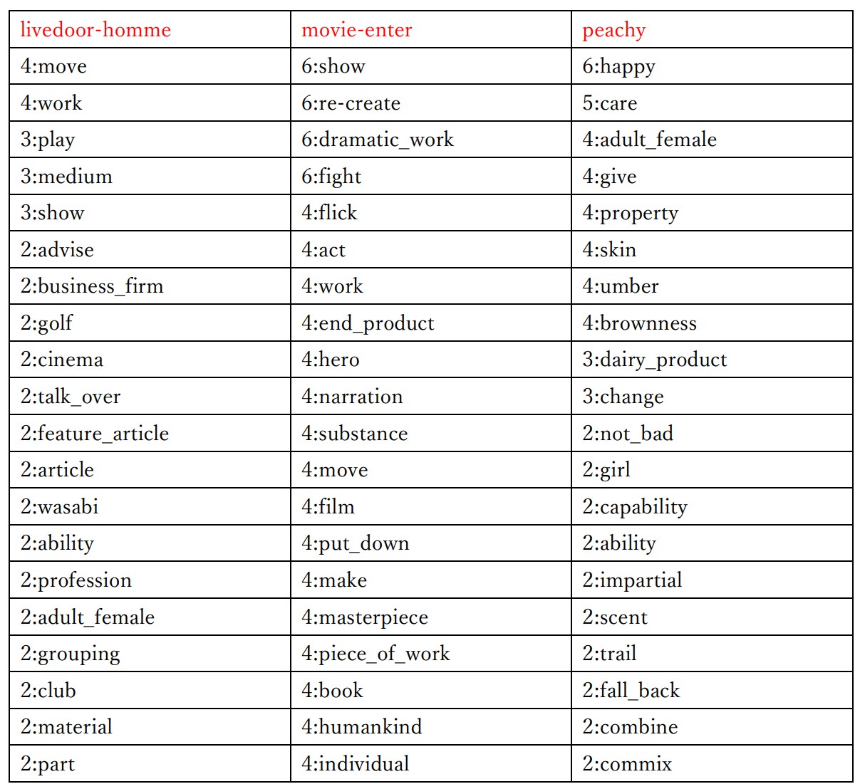 先行研究では上位語を上手く取得できなかったようですが、どんな感じなのか自分もやってみます。