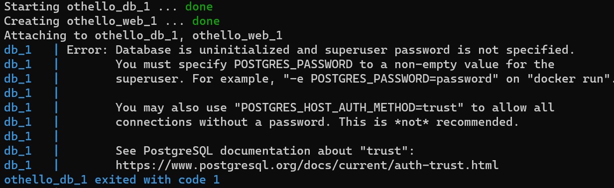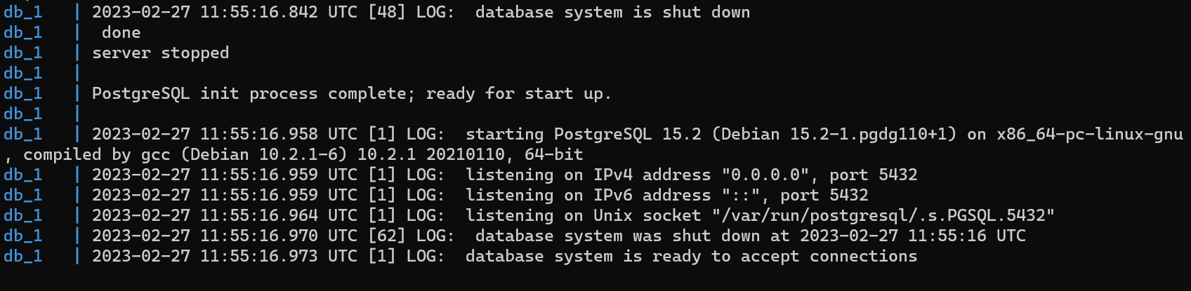 データベースの設定が反映されたので以下のコマンドでコンテナを起動してみる。
