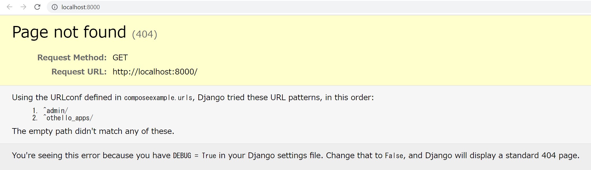 http://localhost:8000/ に接続