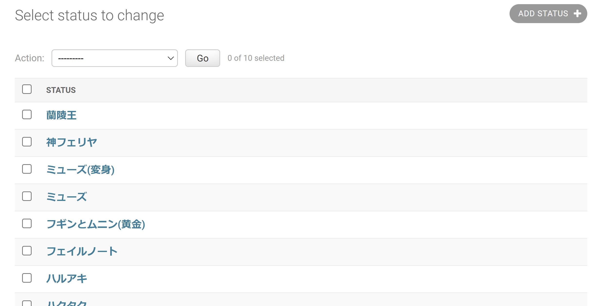 Status を操作してみる。右上の「ADD STATUS」をクリック