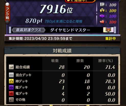 王道デッキよりは遥かに扱いやすいのでダイヤ初心者~中級者にはオススメ。