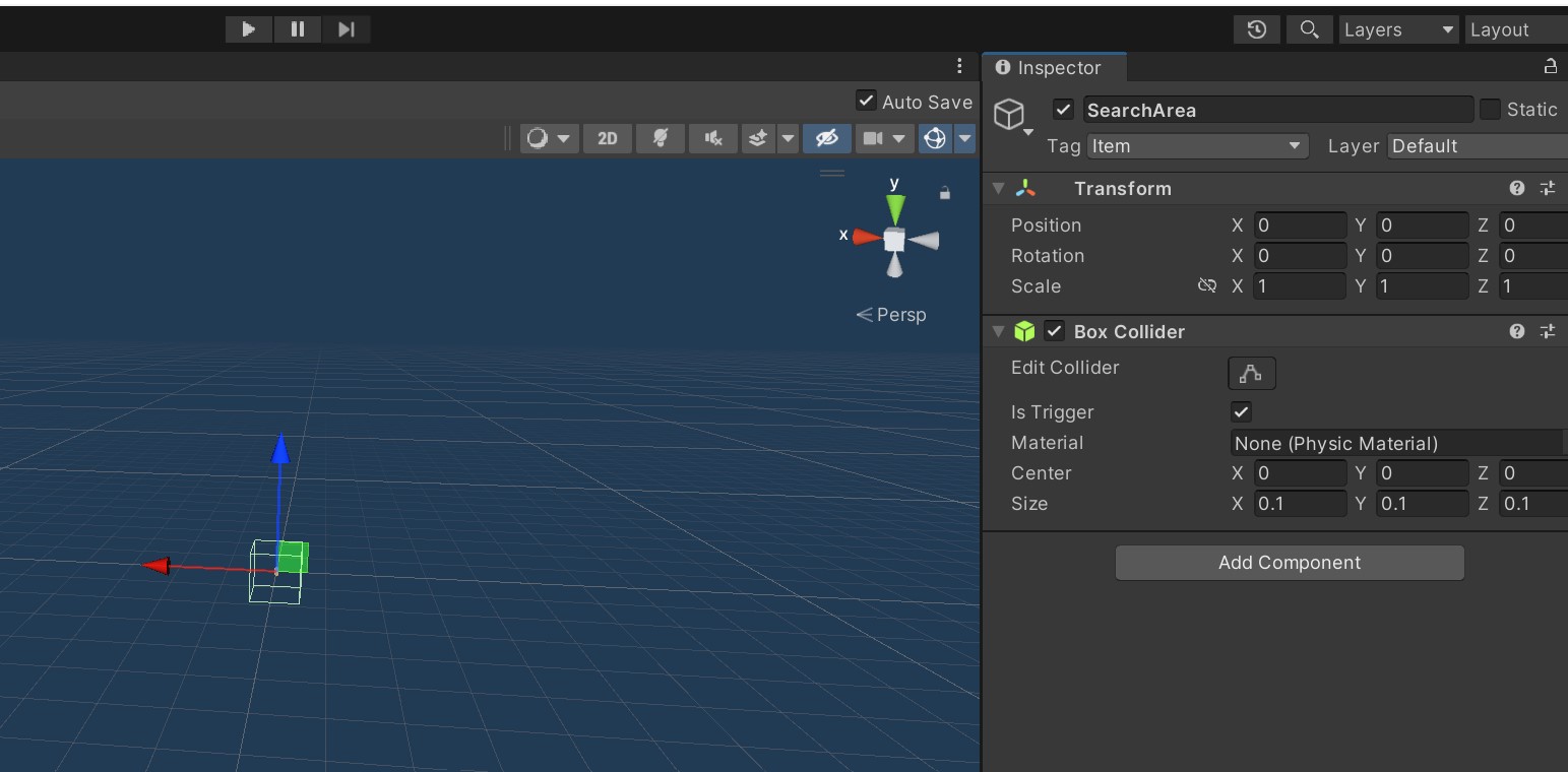 上図のようにアイテムプレハブの子要素に検知エリアを作成しているので原因が分からない...